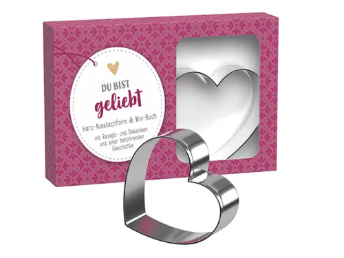 Ausstechform : ca. 9 x 6 cm Buch : 8 x 8 cm, 48 Seiten Verpackung : 16 x 11 x 2,7 cm